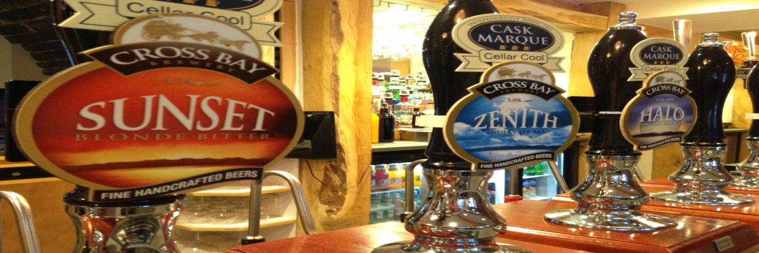 For traditional bitter lovers we have Tetley’s Smoothflow and Cask Ales are offered on a rotating basis, so you can sample the range of interesting local ales from Cross Bay Brewery include Zenith a 5% Indian Pale Ale, Halo a 3.6% English Pale Ale and Sunset a 4.2% Blond Ale.
